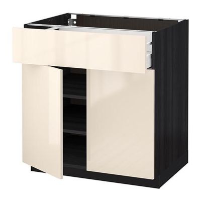 МЕТОД / МАКСИМЕРА Напольный шкаф+ящик/2дверцы - 80x60 см, Рингульт глянцевый кремовый, под дерево черный