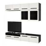 БЕСТО Шкаф для ТВ, комбин/стеклян дверцы - направляющие ящика, плавно закр, черно-коричневый/Марвикен белый прозрачное стекло