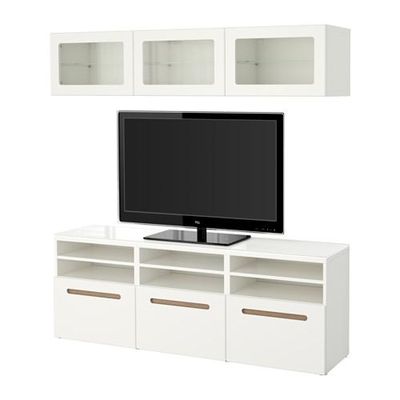 БЕСТО Шкаф для ТВ, комбин/стеклян дверцы - направляющие ящика, плавно закр, Марвикен белый прозрачное стекло
