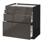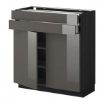 МЕТОД / МАКСИМЕРА Напольный шкаф/2дверцы/2ящика - 80x60 см, Рингульт глянцевый серый, под дерево черный