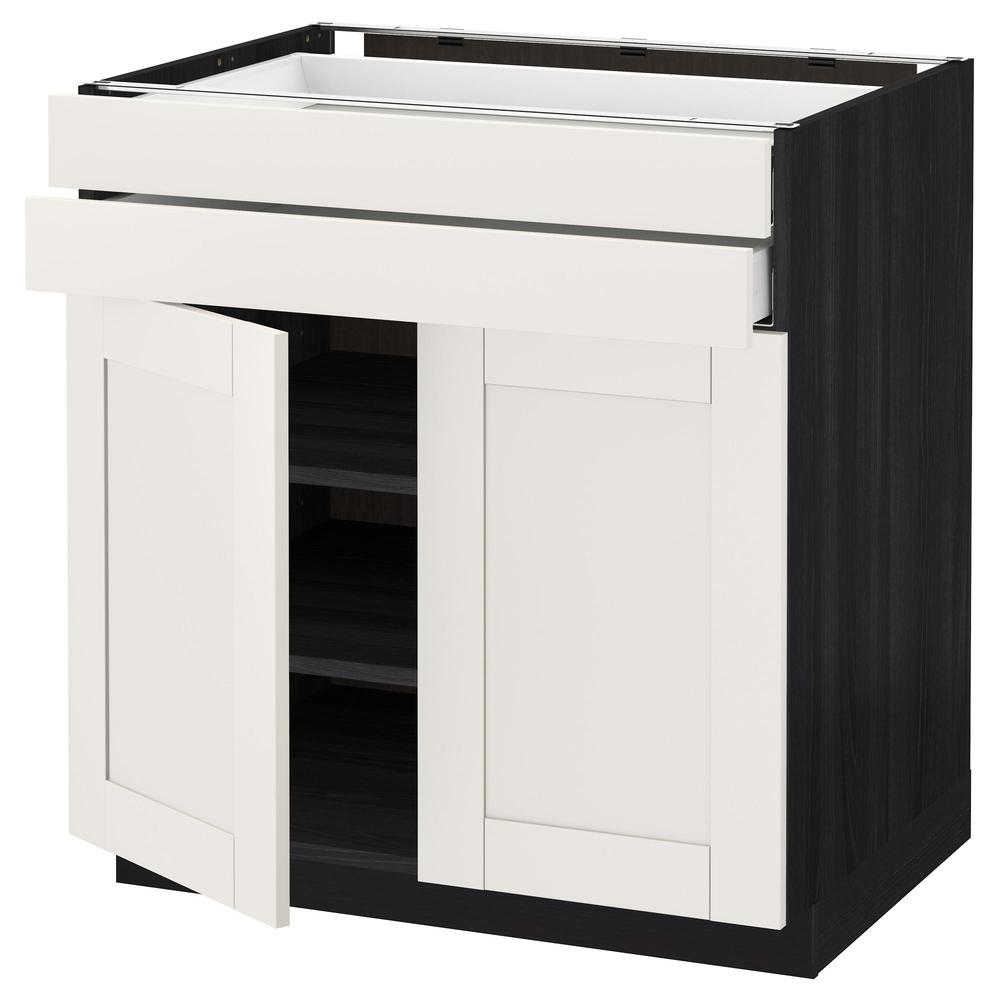 МЕТОД / МАКСИМЕРА Напольный шкаф/2дверцы/2ящика - под дерево черный, Сэведаль белый, 80x60 см