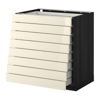 МЕТОД / МАКСИМЕРА Наполн шкаф 8 фронт/8 низк ящиков - 80x60 см, Рингульт глянцевый кремовый, под дерево черный