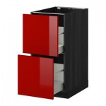 МЕТОД / МАКСИМЕРА Напольн шкаф 2фрнт/2выс ящ - 60x60 см, Рингульт глянцевый красный, под дерево черный