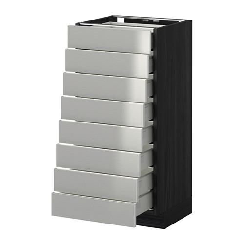 МЕТОД / МАКСИМЕРА Наполн шкаф 8 фронт/8 низк ящиков - под дерево черный, Гревста нержавеющ сталь, 40x37 см
