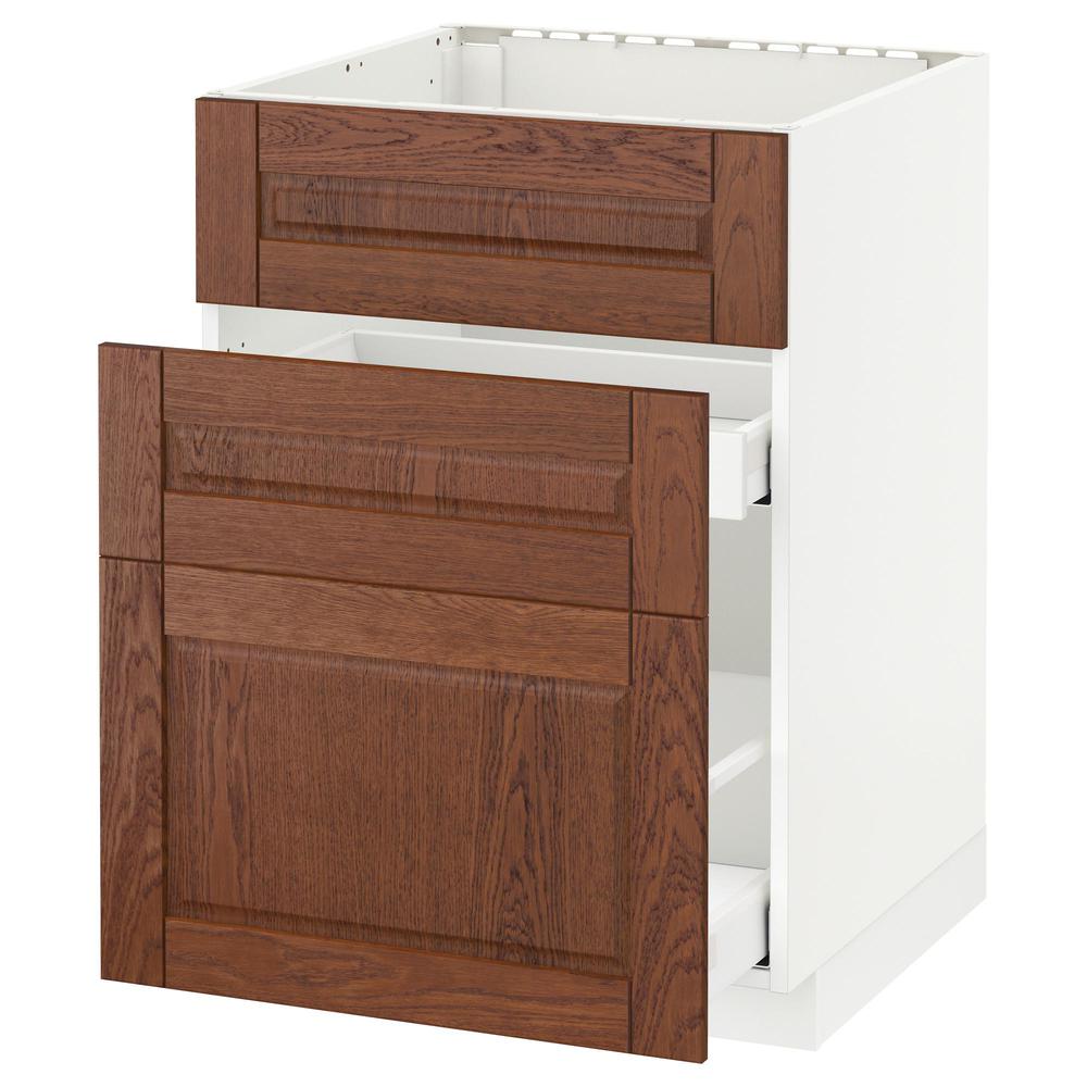 МЕТОД / МАКСИМЕРА Напольн шк п-мойку+3фрнт пнл/2ящ - белый, Филипстад коричневый, 60x60 см