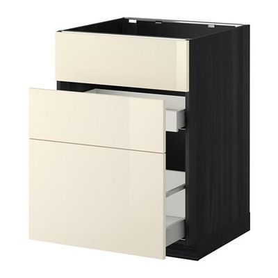 МЕТОД / МАКСИМЕРА Напольн шк п-мойку+3фрнт пнл/2ящ - 60x60 см, Рингульт глянцевый кремовый, под дерево черный