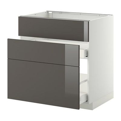 МЕТОД / МАКСИМЕРА Напольн шк п-мойку+3фрнт пнл/2ящ - 80x60 см, Рингульт глянцевый серый, белый