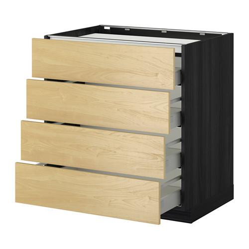 МЕТОД / МАКСИМЕРА Напольн шкаф/4фронт пнл/4ящика - 80x60 см, Тингсрид под березу, под дерево черный