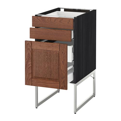 МЕТОД / МАКСИМЕРА Напольн шкаф 3фронт пнл/2низ/2ср ящ - под дерево черный, Филипстад коричневый, 40x60x60 см
