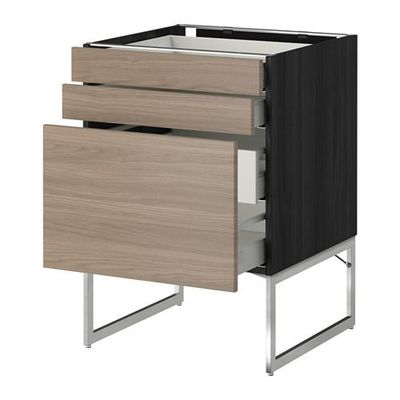 МЕТОД / МАКСИМЕРА Напольн шкаф 3фронт пнл/2низ/2ср ящ - 60x60x60 см, Брокхульт под грецкий орех светло-серый, под дерево черный