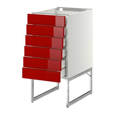 МЕТОД / МАКСИМЕРА Напольн шкаф 6фронт пнл/6 низ ящ - 40x60x60 см, Рингульт глянцевый красный, белый
