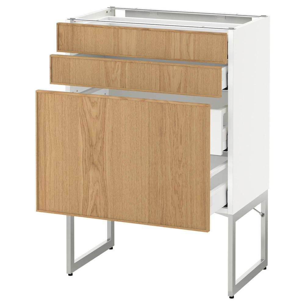 МЕТОД / МАКСИМЕРА Напольн шкаф 3фронт пнл/2низ/2ср ящ - белый, Экестад дуб, 60x37x60 см