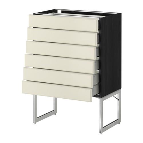 МЕТОД / МАКСИМЕРА Напольн шкаф 6фронт пнл/6 низ ящ - под дерево черный, Будбин белый с оттенком, 60x37x60 см