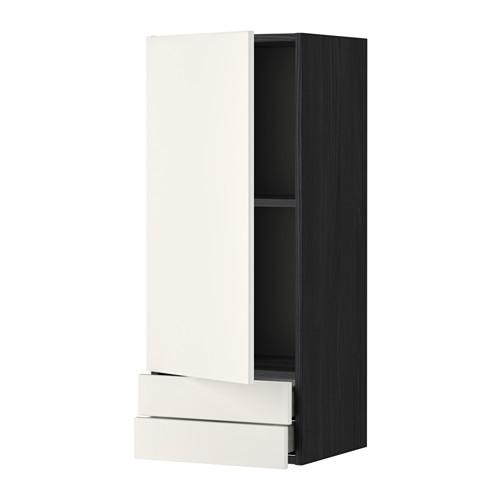 МЕТОД / МАКСИМЕРА Навесной шкаф с дверцей/2 ящика - под дерево черный, Веддинге белый, 40x100 см