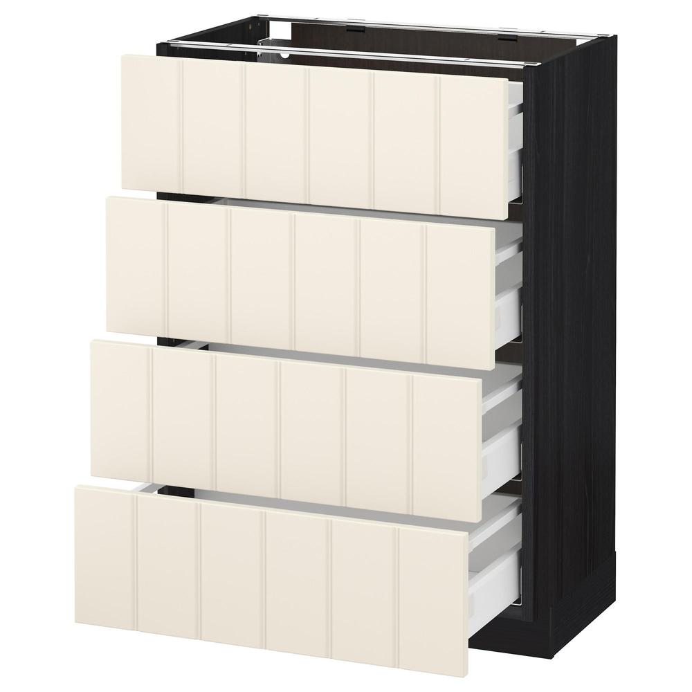 МЕТОД / МАКСИМЕРА Напольн шкаф 4 фронт панели/4 ящика - под дерево черный, Хитарп белый с оттенком, 60x37 см