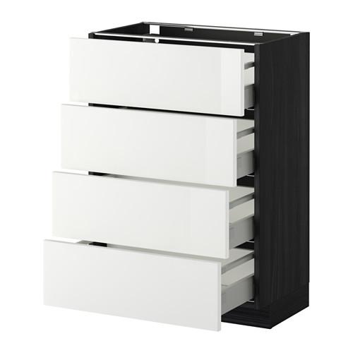 МЕТОД / МАКСИМЕРА Напольн шкаф 4 фронт панели/4 ящика - под дерево черный, Рингульт глянцевый белый, 60x37 см