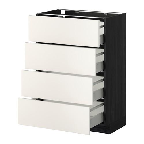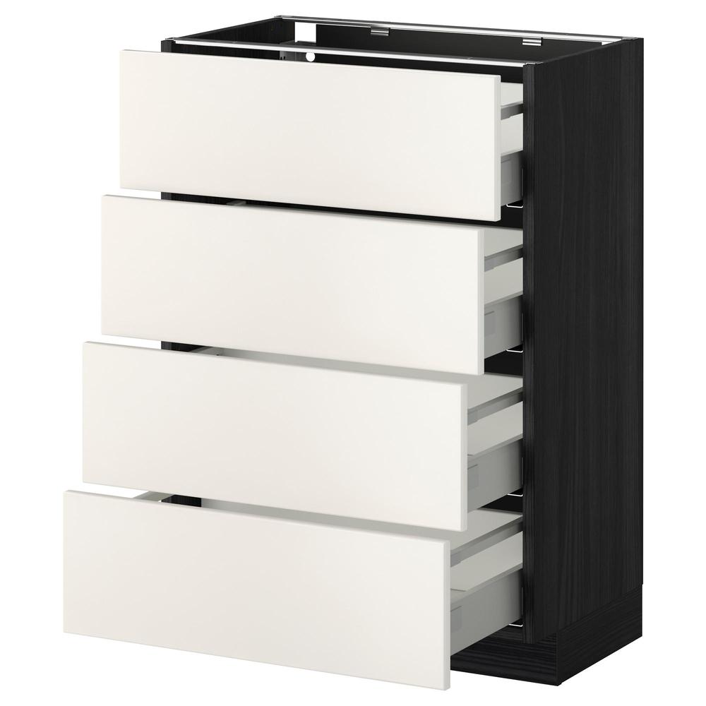 МЕТОД / МАКСИМЕРА Напольн шкаф 4 фронт панели/4 ящика - под дерево черный, Веддинге белый, 60x37 см