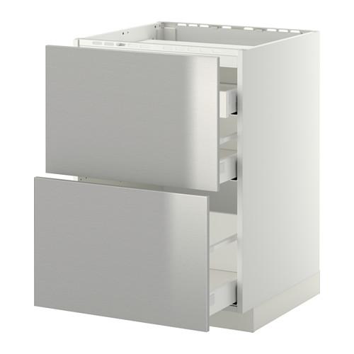 МЕТОД / МАКСИМЕРА Напольн шкаф/2 фронт пнл/3 ящика - белый, Гревста нержавеющ сталь, 60x60 см