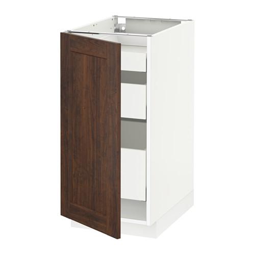 МЕТОД / МАКСИМЕРА Напольный шкаф с 1двр/3ящ - белый, Эдсерум под дерево коричневый, 40x60 см