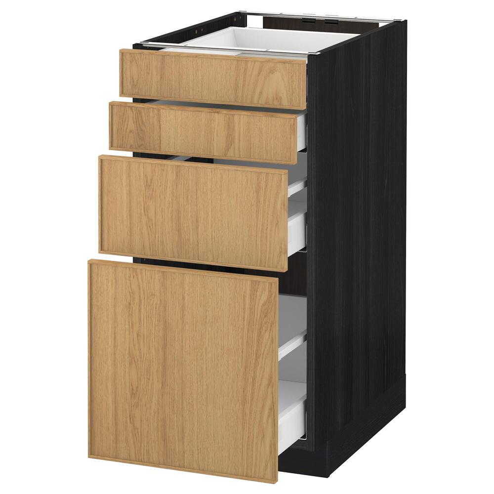 МЕТОД / МАКСИМЕРА Напольн шкаф 4 фронт панели/4 ящика - под дерево черный, Экестад дуб, 40x60 см