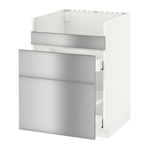 МЕТОД / МАКСИМЕРА Нап шкаф п/мойку ДУМШЁ/3фасада/2ящ - белый, Гревста нержавеющ сталь, 60x60 см