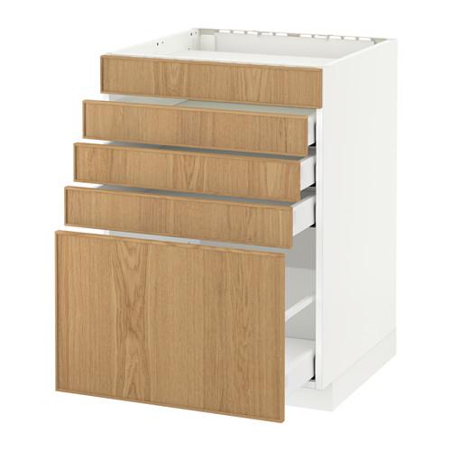 МЕТОД / МАКСИМЕРА Напольн шк д/вар панели/5фасад/4ящ - белый, Экестад дуб, 60x60 см