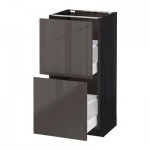 МЕТОД / МАКСИМЕРА Напольный шкаф с 2 ящиками - 60x37 см, Рингульт глянцевый серый, под дерево черный