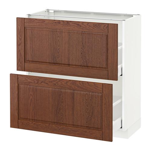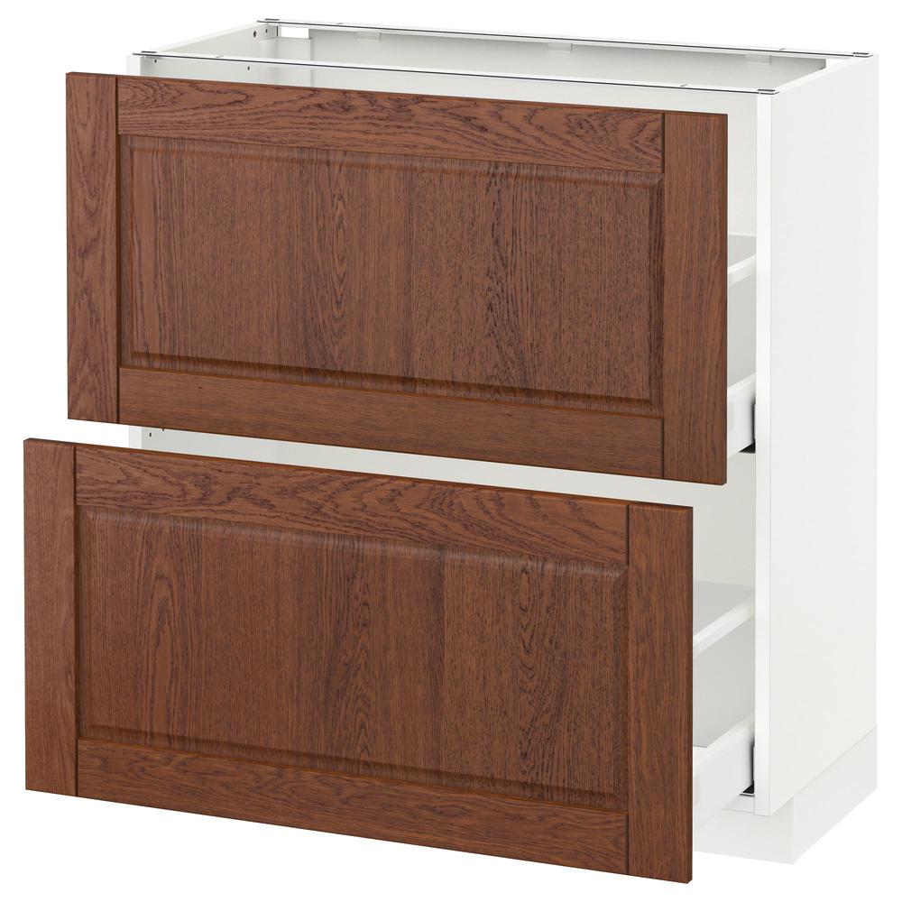 МЕТОД / МАКСИМЕРА Напольный шкаф с 2 ящиками - белый, Филипстад коричневый, 80x37 см