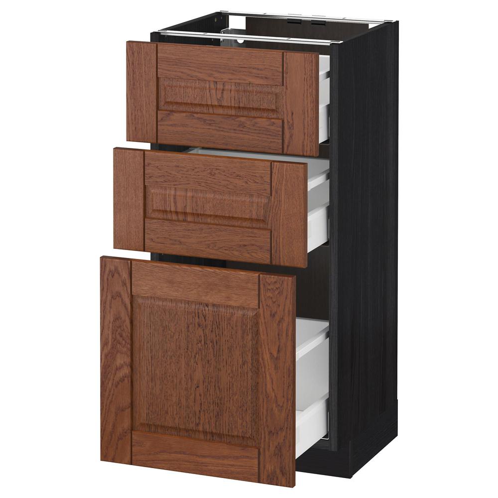 МЕТОД / МАКСИМЕРА Напольный шкаф с 3 ящиками - под дерево черный, Филипстад коричневый, 40x37 см