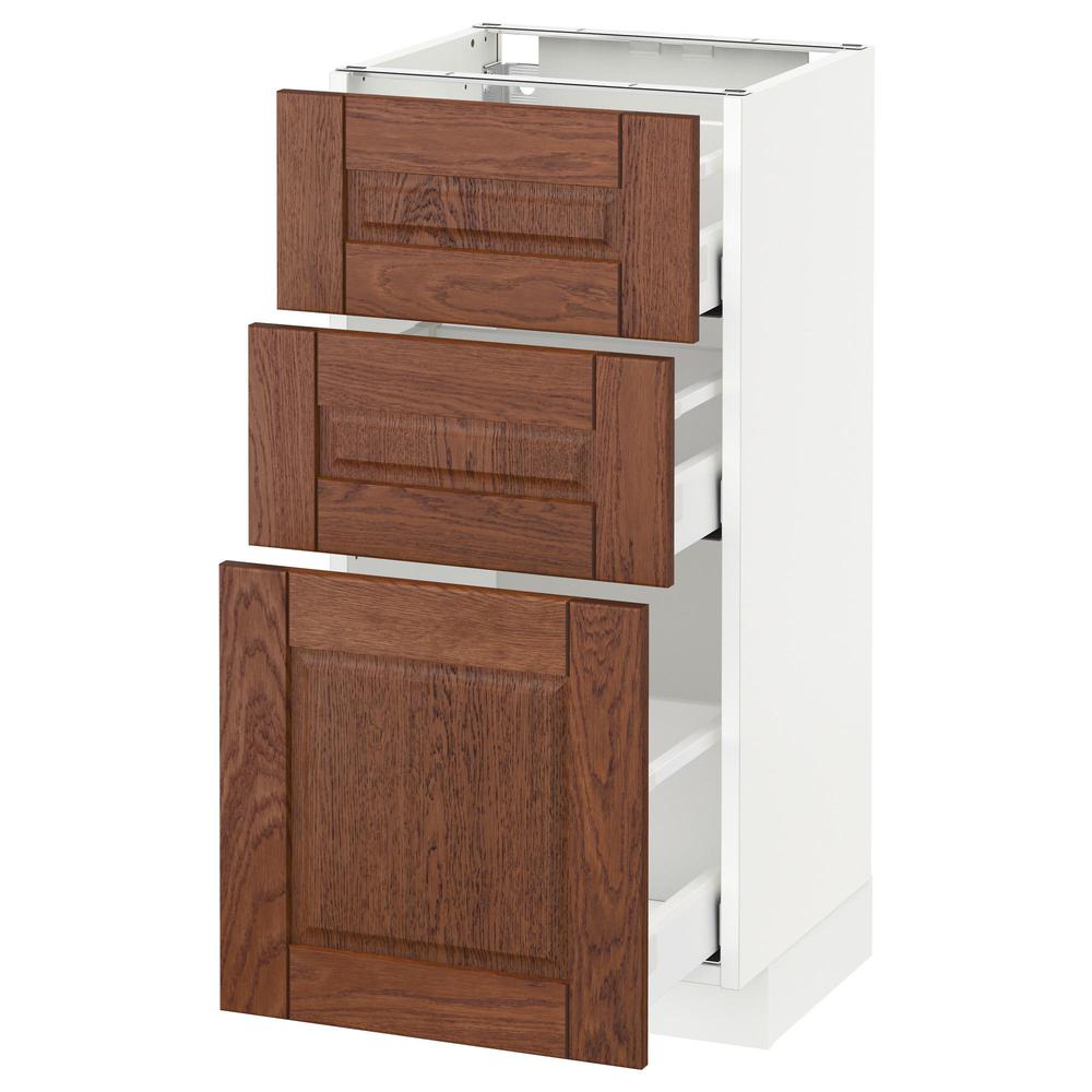 МЕТОД / МАКСИМЕРА Напольный шкаф с 3 ящиками - белый, Филипстад коричневый, 40x37 см
