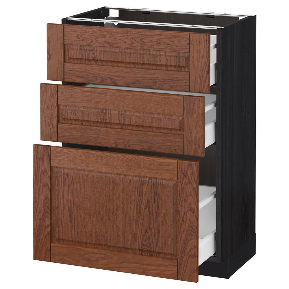 МЕТОД / МАКСИМЕРА Напольный шкаф с 3 ящиками - под дерево черный, Филипстад коричневый, 60x37 см