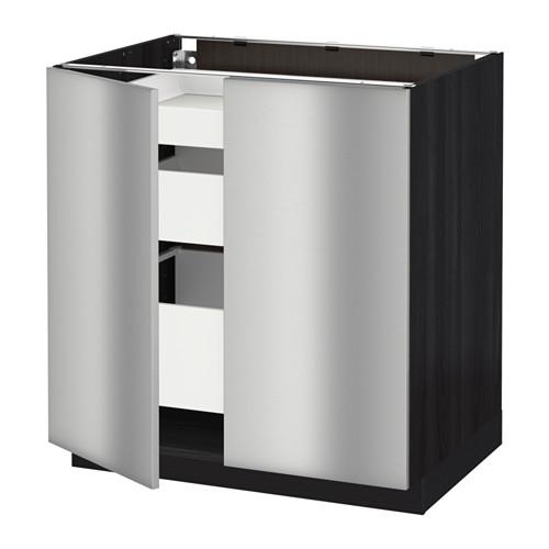МЕТОД / МАКСИМЕРА Напольный шкаф с 2дверцами/3ящиками - под дерево черный, Гревста нержавеющ сталь
