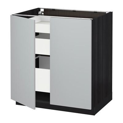 МЕТОД / МАКСИМЕРА Напольный шкаф с 2дверцами/3ящиками - Веддинге серый, под дерево черный