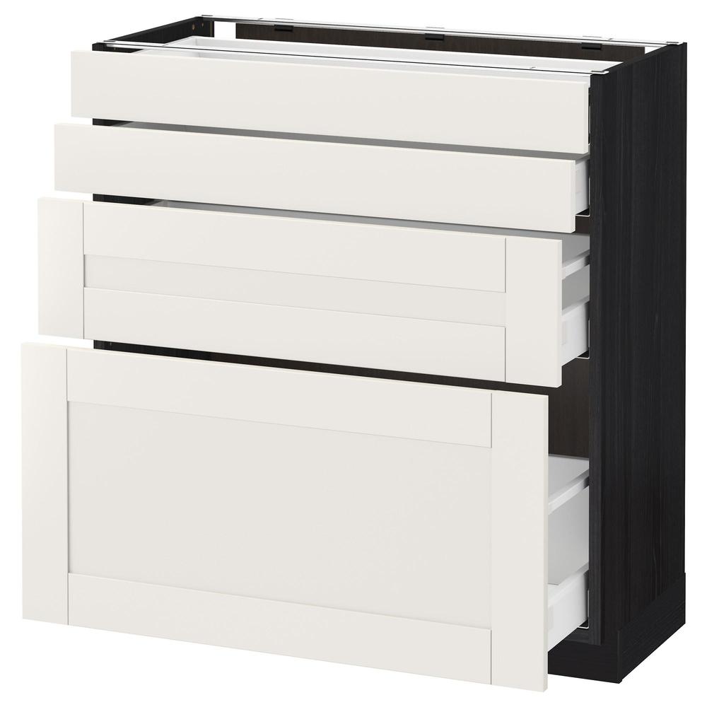 МЕТОД / МАКСИМЕРА Напольн шкаф 4 фронт панели/4 ящика - под дерево черный, Сэведаль белый, 80x37 см
