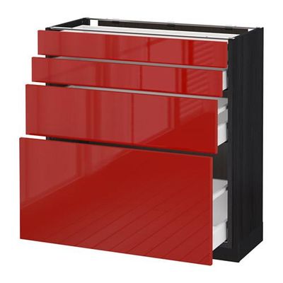 МЕТОД / МАКСИМЕРА Напольн шкаф 4 фронт панели/4 ящика - под дерево черный, Рингульт глянцевый красный, 80x37 см