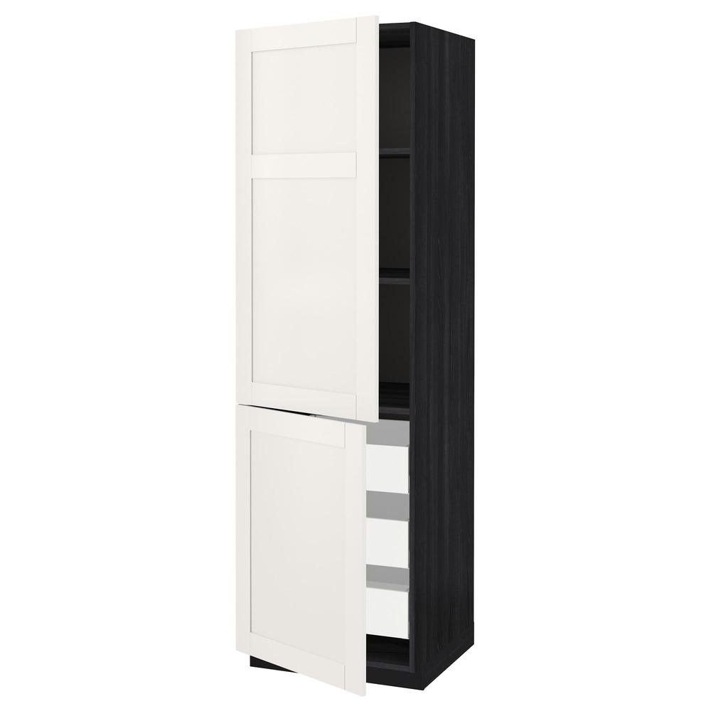 МЕТОД / МАКСИМЕРА Высокий шкаф+полки/3 ящика/2 дверцы - под дерево черный, Сэведаль белый, 60x60x200 см
