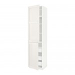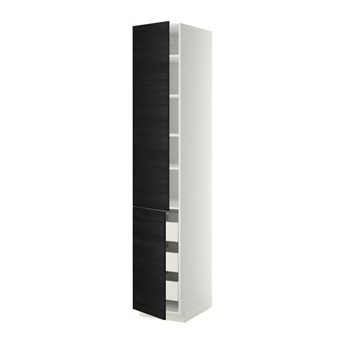 МЕТОД / МАКСИМЕРА Высокий шкаф+полки/3 ящика/2 дверцы - белый, Тингсрид под дерево черный, 40x60x220 см