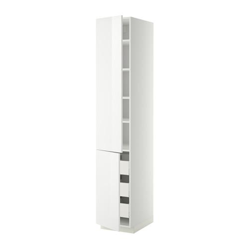 МЕТОД / МАКСИМЕРА Высокий шкаф+полки/3 ящика/2 дверцы - белый, Рингульт глянцевый белый, 40x60x220 см