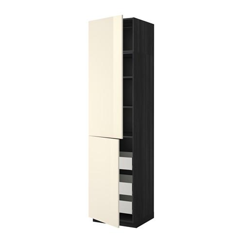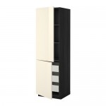МЕТОД / МАКСИМЕРА Высокий шкаф+полки/3 ящика/2 дверцы - 60x60x240 см, Рингульт глянцевый кремовый, под дерево черный