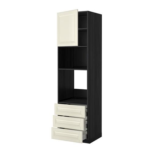 МЕТОД / МАКСИМЕРА Высок шкаф д/духовки/СВЧ/дверца/3ящ - под дерево черный, Будбин белый с оттенком, 60x60x220 см
