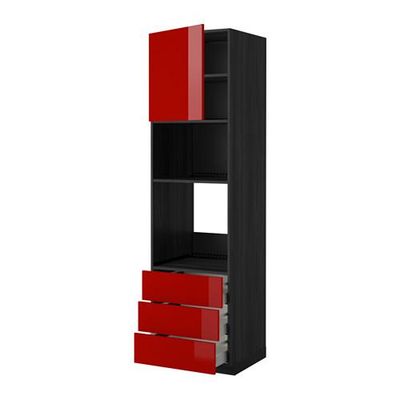 МЕТОД / МАКСИМЕРА Высок шкаф д/духовки/СВЧ/дверца/3ящ - 60x60x220 см, Рингульт глянцевый красный, под дерево черный