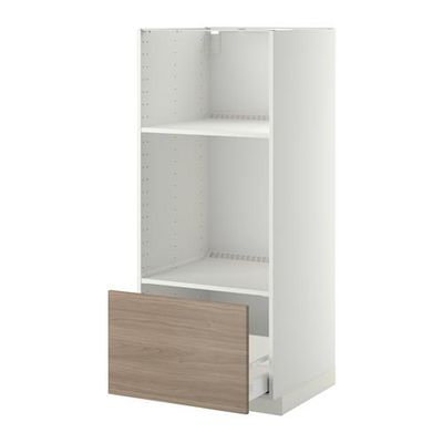 МЕТОД / МАКСИМЕРА Высокий шкаф с ящиком д/духовки/СВЧ - Брокхульт под грецкий орех светло-серый, белый
