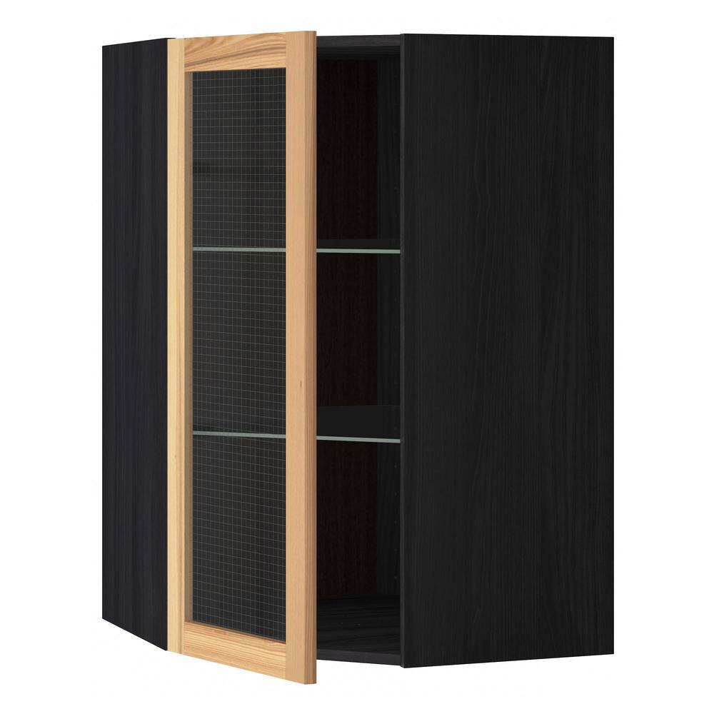 МЕТОД Углов навесн шк с полками/сткл дв - под дерево черный, Торхэмн естественный ясень, 68x100 см