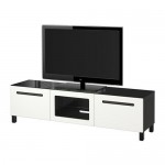 БЕСТО Тумба под ТВ, с дверцами - черно-коричневый/Марвикен белый прозрачное стекло, направляющие ящика, плавно закр