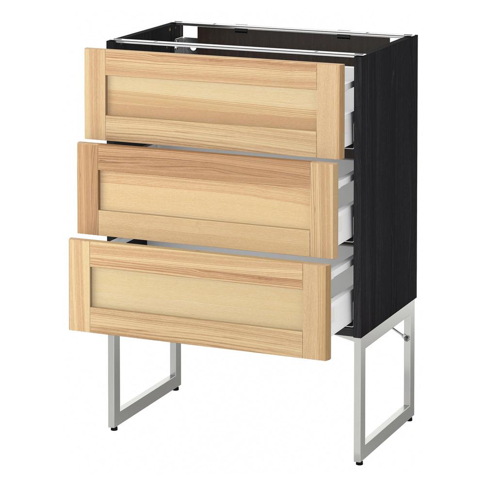 МЕТОД / МАКСИМЕРА Нплн шк 3 фрнт/3 средн ящика - под дерево черный, Торхэмн естественный ясень, 60x37x60 см