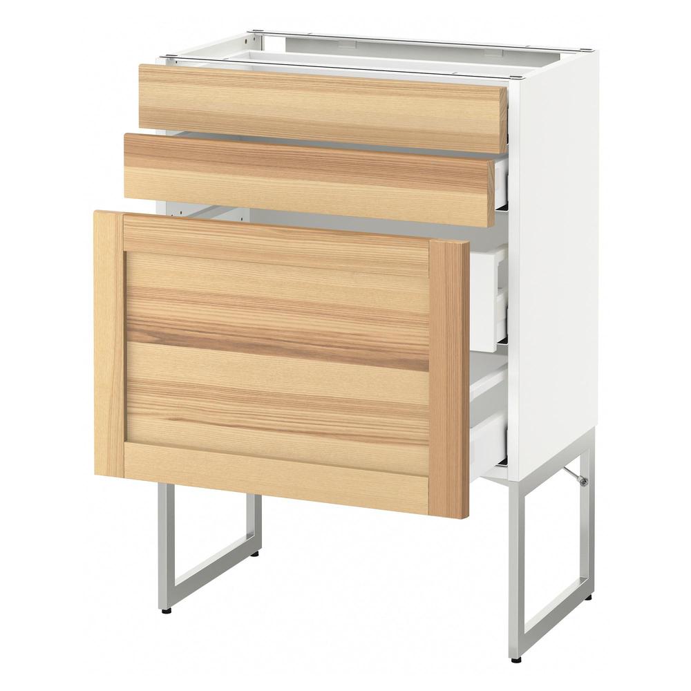 МЕТОД / МАКСИМЕРА Напольн шкаф 3фронт пнл/2низ/2ср ящ - белый, Торхэмн естественный ясень, 60x37x60 см