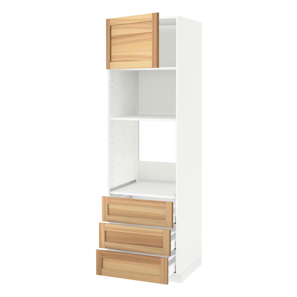 МЕТОД / МАКСИМЕРА Высок шкаф д/духовки/СВЧ/дверца/3ящ - белый, Торхэмн естественный ясень, 60x60x200 см