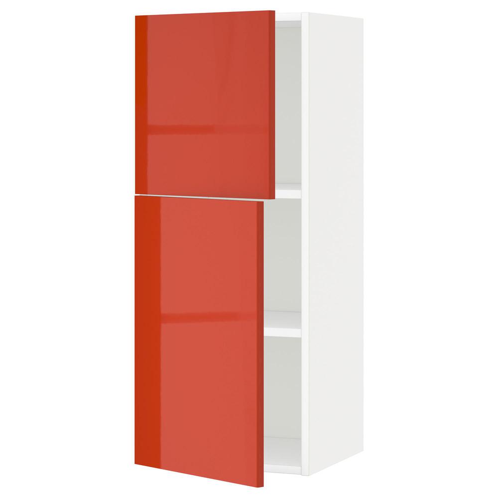 МЕТОД Навесной шкаф с полками/2дверцы - белый, Ерста глянцевый оранжевый, 40x100 см