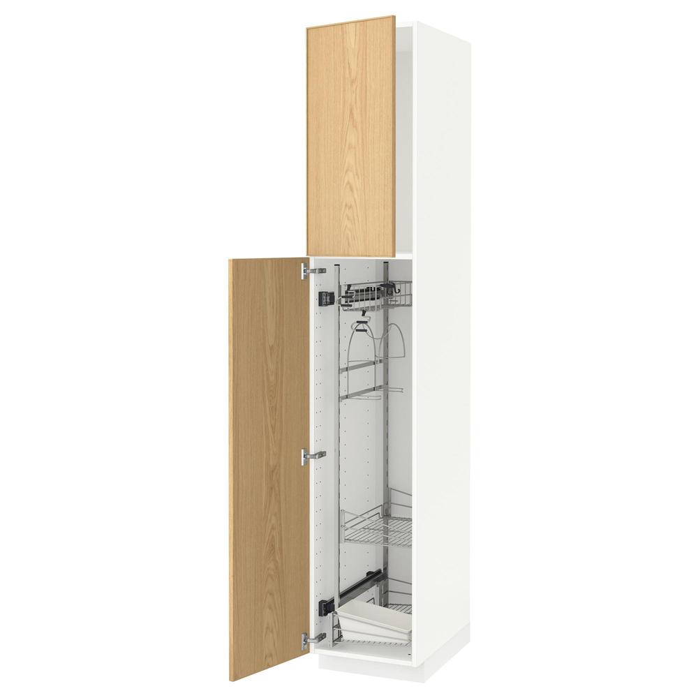 МЕТОД Выс шк с отд д/акс д/убрк - белый, Экестад дуб, 40x60x220 см