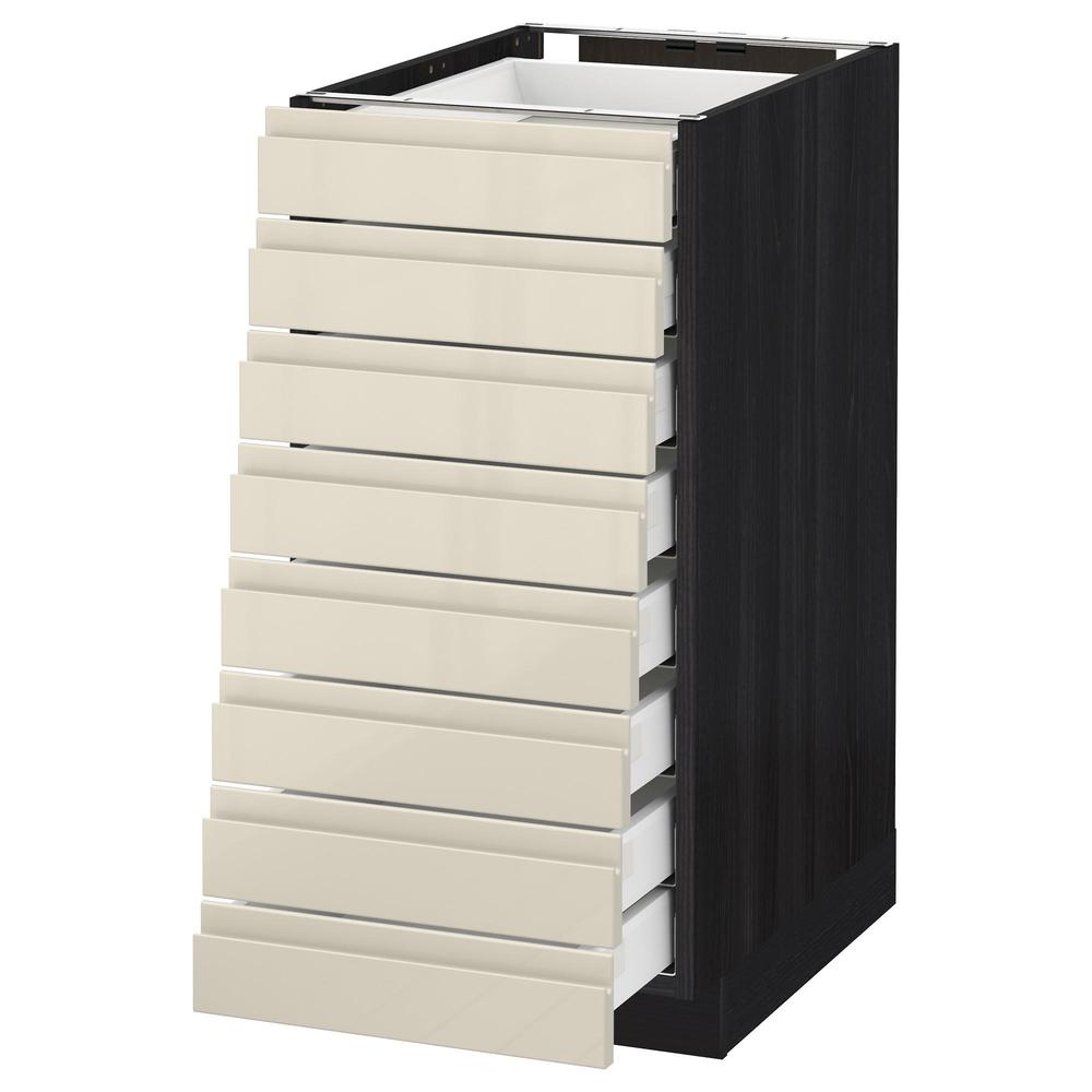 МЕТОД / МАКСИМЕРА Наполн шкаф 8 фронт/8 низк ящиков - под дерево черный, Воксторп глянцевый светло-бежевый, 40x60 см